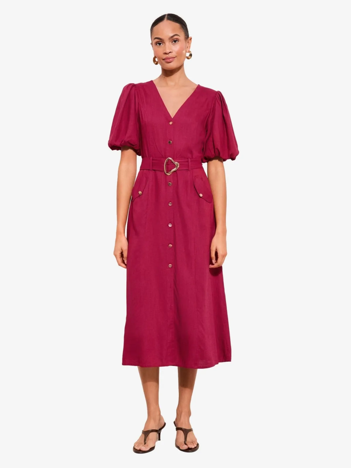 Design: Pofmouwen; Type sluiting: Knoopsluiting; Materiaal: Viscose; Motief: Effen; Kraag: Zonder kraag; Details: Gedrapeerd; Extra's: Op staal naden; Lengte: 3/4 lengte; Snit: Getailleerd; Pasvorm: Normale pasvorm; Armlengte: Halve mouw
