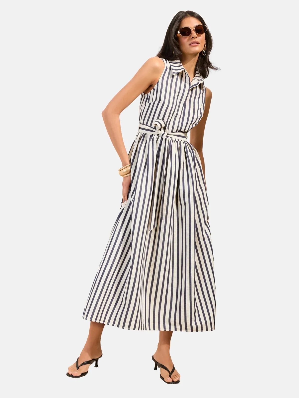 Design: Gevoerde zoom/rand, Figuurnaden, Zakken aan de zijkant; Type sluiting: Knoopsluiting; Motief: Gestreept; Kraag: Kentkraag; Soort bandjes: Brede bandjes; Details: Gedrapeerd; Extra's: All-over patroon; Lengte: 7/8 lengte; Snit: Getailleerd; Pasvorm: Normale pasvorm; Armlengte: Mouwloos