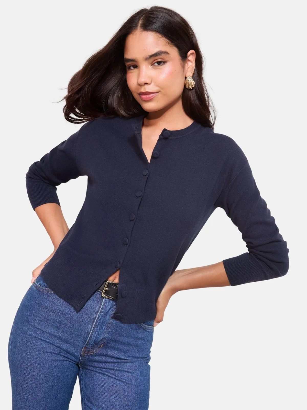 Design: Geribbelde kraag, Knop placket, Geribd ceintuurtje, Overcut schouder, Knop sluiting; Type sluiting: Knoopsluiting; Materiaal: Knitwear; Halstype: Ronde hals; Motief: Effen; Extra's: Op staal naden, Voelt zacht aan; Pasvorm: Slanke pasvorm; Armlengte: Lange mouw; Lengte: Korte pasvorm