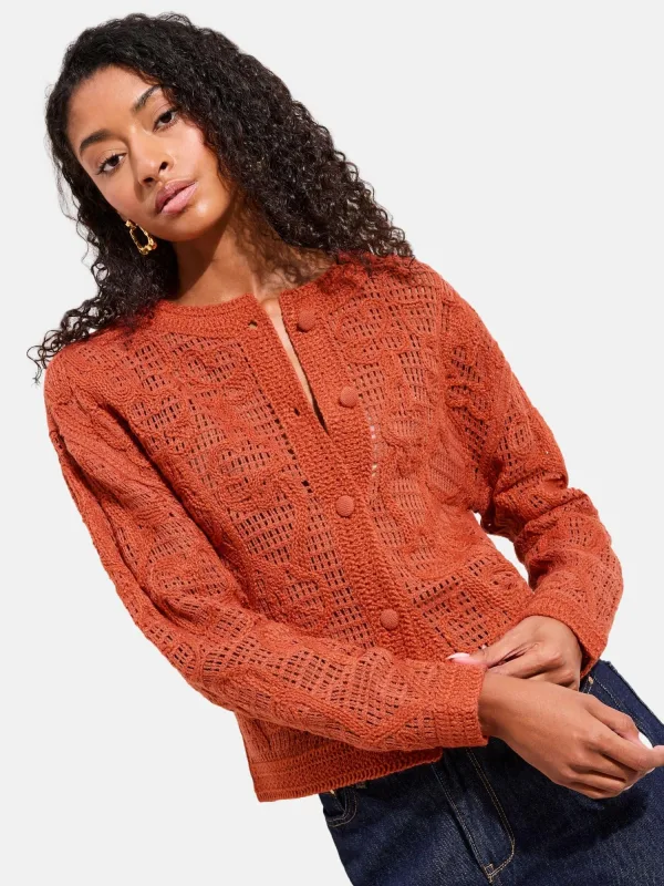Design: Geribd ceintuurtje; Type sluiting: Knoopsluiting; Materiaal: Gehaakt; Halstype: Ronde hals; Motief: Effen; Extra's: Fully fashioned; Pasvorm: Normale pasvorm; Armlengte: Lange mouw; Lengte: Normale lengte