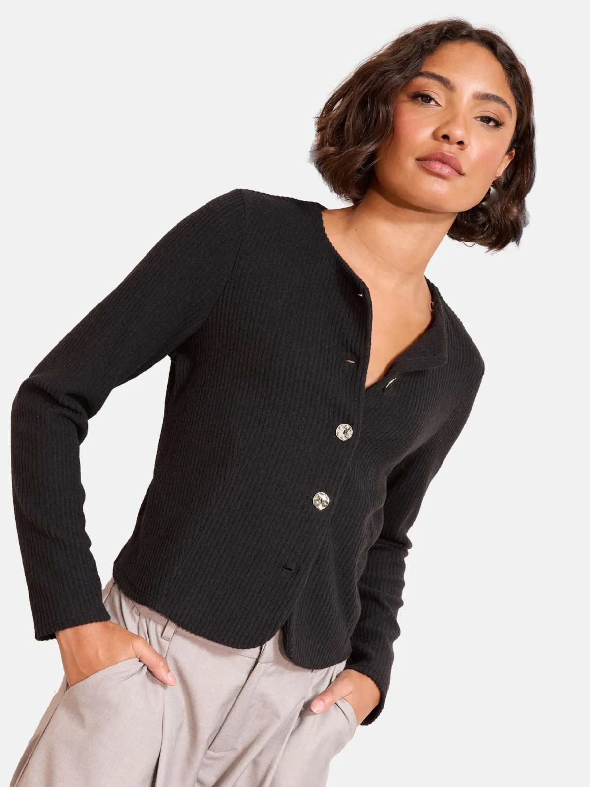 Design: Figuurnaden, Knop placket, Geribbeld gebreid, Ronde zoom; Type sluiting: Knoopsluiting; Materiaal: Knitwear; Halstype: Ronde hals; Motief: Effen; Extra's: Met textuur, Voelt zacht aan; Pasvorm: Slanke pasvorm; Armlengte: Lange mouw; Lengte: Normale lengte