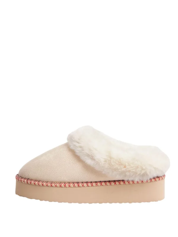 Design: Profielzolen; Type sluiting: Slip; Materiaal: Imitatieleder; Motief: Effen; Plateau: Met plateau; Materiaal: Imitatieleer; Schoenneus: Ronde neus; Extra's: Met faux bont trim; Hakhoogte: Platte hak (0-3 cm)