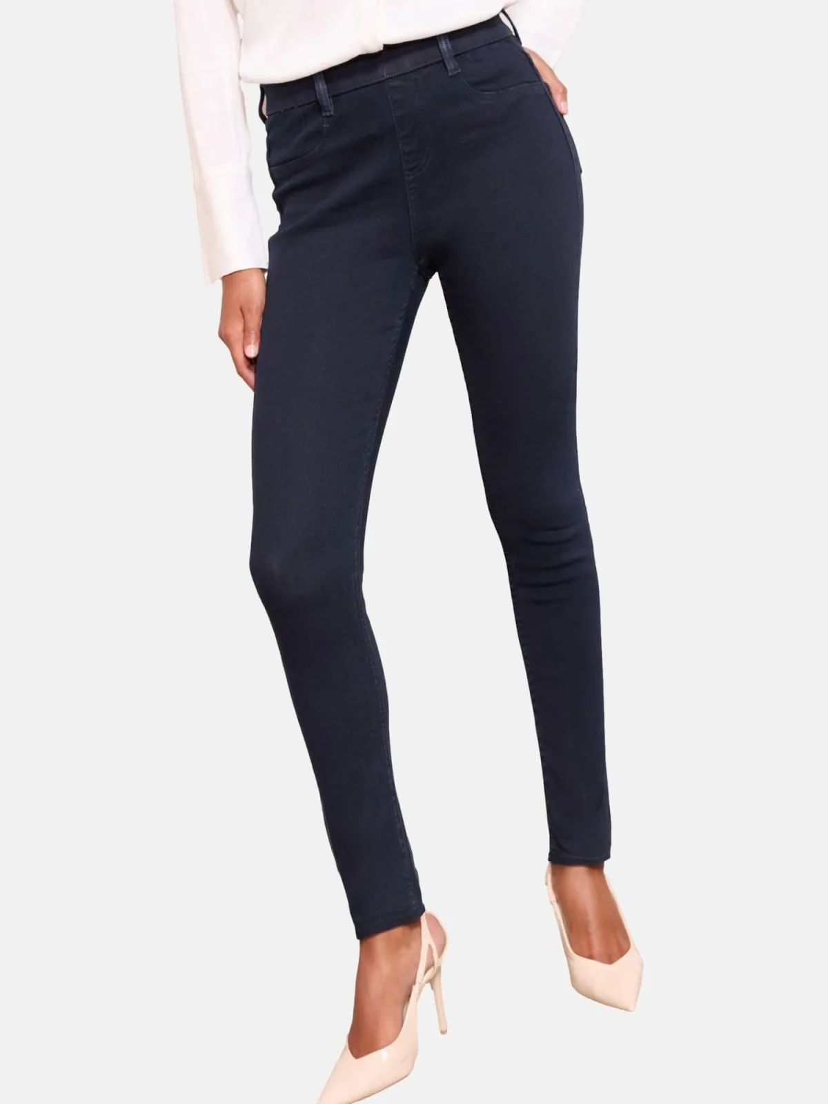 Design: Gevoerde zoom/rand, Elastische taille/zoom; Materiaal: Denim; Motief: Effen; Extra's: Op staal naden, Riemlussen; Wassing: Rinsed/dark washed; Lengte: 7/8 lengte; Pasvorm: Skinny; Taillehoogte: High waist