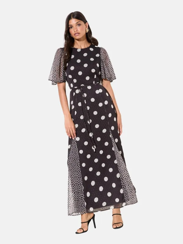 Design: Gevoerde zoom/rand, Met onderjurk, Pofmouwen, Tailleriem; Materiaal: Chiffon; Halstype: Ronde hals; Motief: Gestippeld; Details: Gedrapeerd; Extra's: All-over patroon, Lichte stof; Lengte: 7/8 lengte; Snit: Getailleerd; Pasvorm: Normale pasvorm; Armlengte: Halve mouw