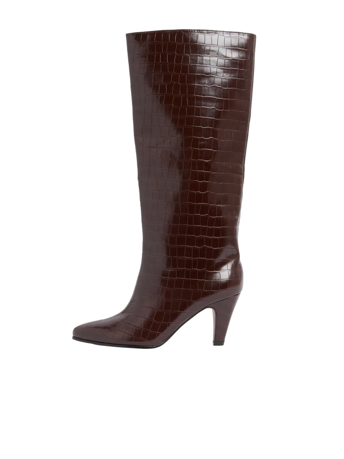 Design: Elastische inserts; Type sluiting: Slip; Type hak: Trechterhak; Materiaal: Imitatieleder; Motief: Dierenprint; Materiaal: Imitatieleer; Schoenneus: Spitse neus; Extra's: Op staal naden, Reptile look; Hakhoogte: Middelhoge hak (3-7 cm); Schachthoogte: 6cm - 15cm; Pasvorm van de schoenen: Normaal