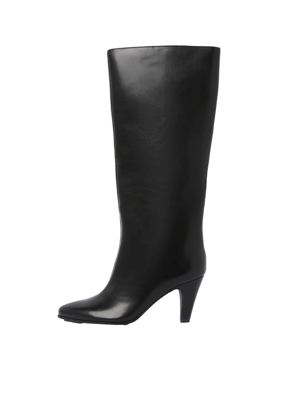 Design: Versterkte hak; Type sluiting: Slip; Type hak: Trechterhak; Materiaal: Imitatieleder; Motief: Effen; Materiaal: Imitatieleer; Schoenneus: Spitse neus; Extra's: Op staal naden; Hakhoogte: Middelhoge hak (3-7 cm); Schachthoogte: 6cm - 15cm