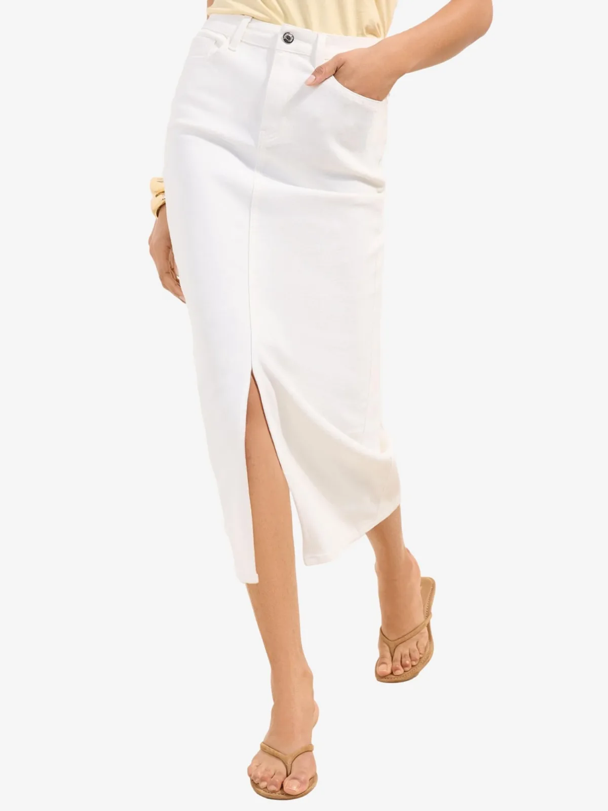 Design: Beenopening, Ritssluiting, Zakken aan de zijkant; Type sluiting: Ritssluiting; Materiaal: Denim; Motief: Effen; Rokvorm: Kokerrok; Extra's: Op staal naden, Riemlussen; Lengte: 3/4 lengte; Pasvorm: Slanke pasvorm; Taillehoogte: High waist