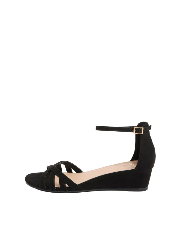 Design: Versterkte hak; Type sluiting: Riemsluiting; Type hak: Sleehak; Motief: Effen; Plateau: Met plateau; Materiaal: Textiel; Schoenneus: Open toe; Extra's: Flexibele zool; Hakhoogte: Middelhoge hak (3-7 cm)