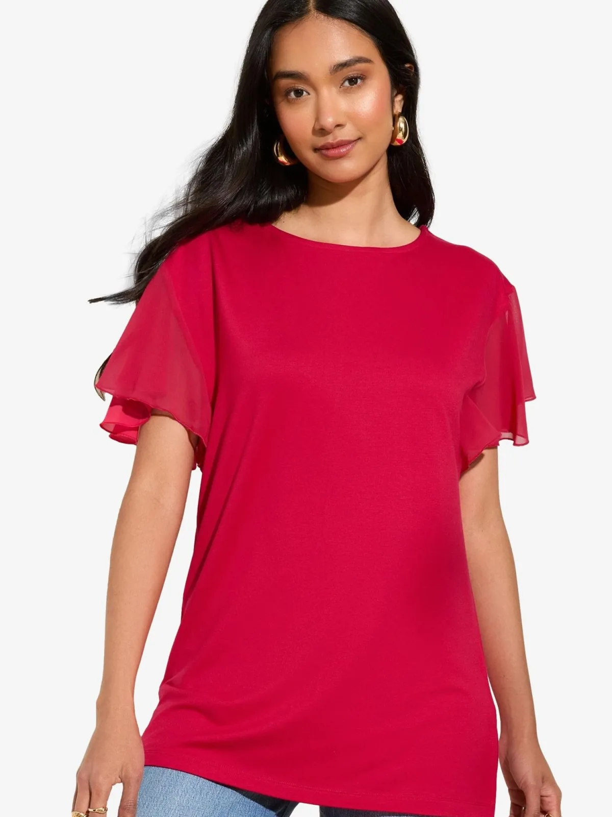 Design: Gevoerde zoom/rand, Zijdelingse inkepingen; Materiaal: Jersey; Halstype: Ronde hals; Motief: Effen; Details: Plooien; Extra's: Op staal naden, Koele grip; Pasvorm: Losse pasvorm; Armlengte: Kwartmouw; Lengte: Lange pasvorm