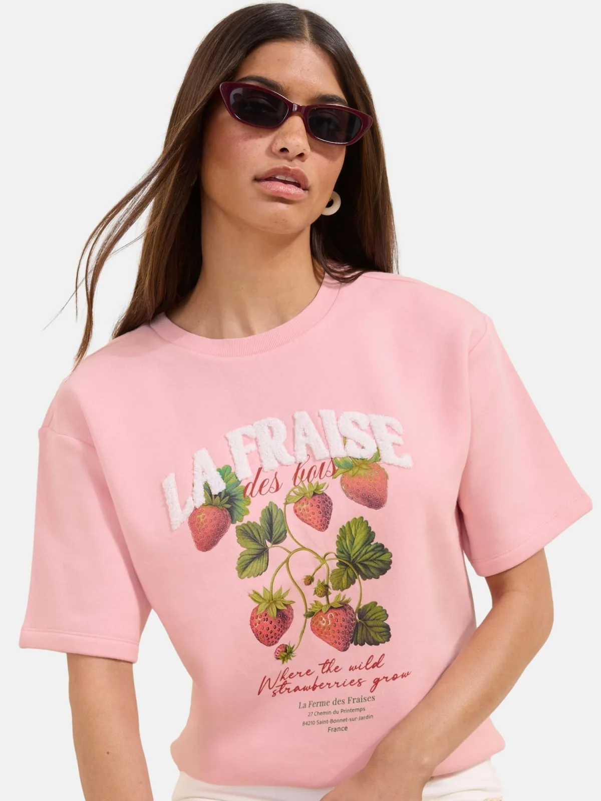 Design: Geribbelde kraag, Overcut schouder; Materiaal: Sweatstof; Halstype: Ronde hals; Motief: Motiefprint; Extra's: Op staal naden, Flockprint; Pasvorm: Losse pasvorm; Armlengte: Halve mouw; Lengte: Normale lengte