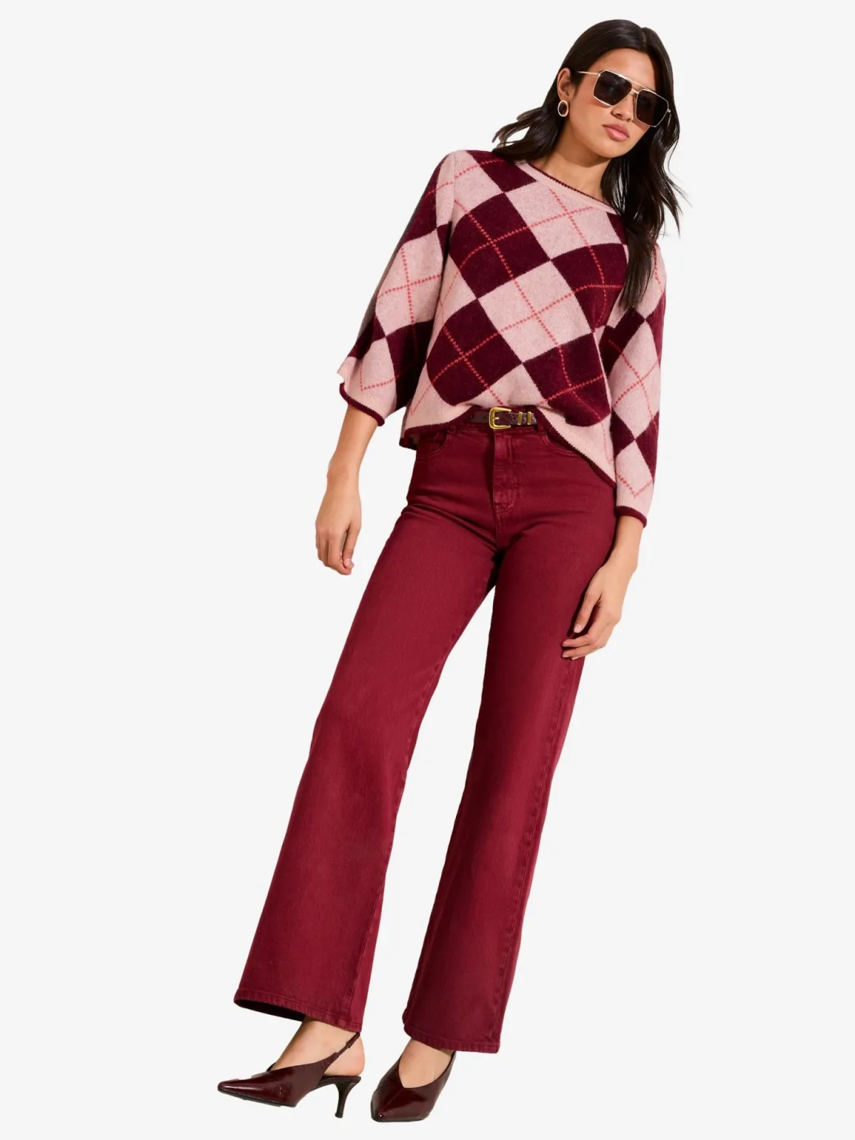 Design: Geribd ceintuurtje; Materiaal: Knitwear; Halstype: Ronde hals; Motief: Geruit; Extra's: Op staal naden; Pasvorm: Normale pasvorm; Armlengte: Driekwart mouw; Lengte: Normale lengte