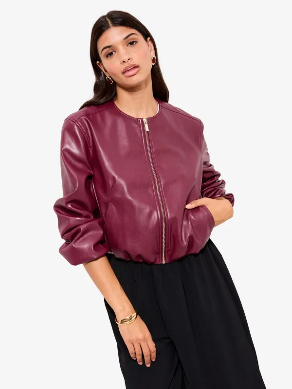 Design: Pofmouwen, Zakken aan de zijkant; Type sluiting: Ritssluiting; Type jas: Bikerjack; Voering: Licht gevoerd; Materiaal: Imitatieleder; Motief: Effen; Extra's: Gecoat, Gladde stof; Pasvorm: Normale pasvorm