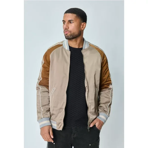 Frilivin Heren Tussenjas – Licht & Donkerbruin Bomberjack Op zoek naar een stijlvolle en comfortabele tussenjas voor het voor- en najaar? Dit heren bomberjack van Frilivin combineert een sportieve uitstraling met een moderne pasvorm. De jas is uitgevoerd in een fraaie combinatie van licht- en donkerbruin, met een opvallende blauw-witte bies langs de mouwen en hals voor een frisse, eigentijdse look. De normal fit zorgt voor een comfortabele pasvorm die mooi valt over een T-shirt of trui. Dankzij de twee voorzakken neem je veilig je essentials mee. Gemaakt van 100% polyester is deze