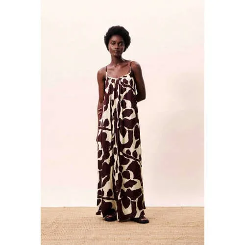 Deze lange bruine jurk met spaghettibandjes van FRNCH heeft een rustige, vrouwelijke uitstraling en voelt soepel aan. De zachte bruine kleur is makkelijk te combineren, terwijl de ronde hals en het mouwloze model zorgen voor een elegante, open look. Door de rechte lijn en vloeiende stof valt de jurk natuurlijk langs je lichaam zonder te strak te zitten.Details die het verschil maken Lange jurk die mooi langs het lichaam valt Spaghettibandjes voor een luchtige, zomerse uitstraling Ronde hals voor een zachte, verfijnde halslijn Gemaakt van soepele viscose die prettig aanvoelt op de huid Zonder sluiting, waardoor je de jurk eenvoudig aantrekt Bruine kleur die goed combineert met sandalen, sneakers of een vestElegant in elke settingDeze lange jurk is geschikt voor verschillende momenten op de dag. Draag haar met platte sandalen en een lichte cardigan voor een ontspannen daglook, of combineer met een korte blazer en hakken voor een diner of feestje. In de zomer draag je de jurk los, op koelere dagen met een trui of spencer eroverheen.De stijl van FRNCHFRNCH is een Frans merk dat bekendstaat om moderne ontwerpen met een vrouwelijke en verfijnde uitstraling. De collecties combineren tijdloze lijnen met actuele kleuren en details. Zo haal je met ieder FRNCH item een doordacht kledingstuk in huis dat je op verschillende manieren kunt dragen.Een lange jurk waar je seizoen na seizoen naar teruggrijpt, dankzij de comfortabele pasvorm en rustige, neutrale kleur.