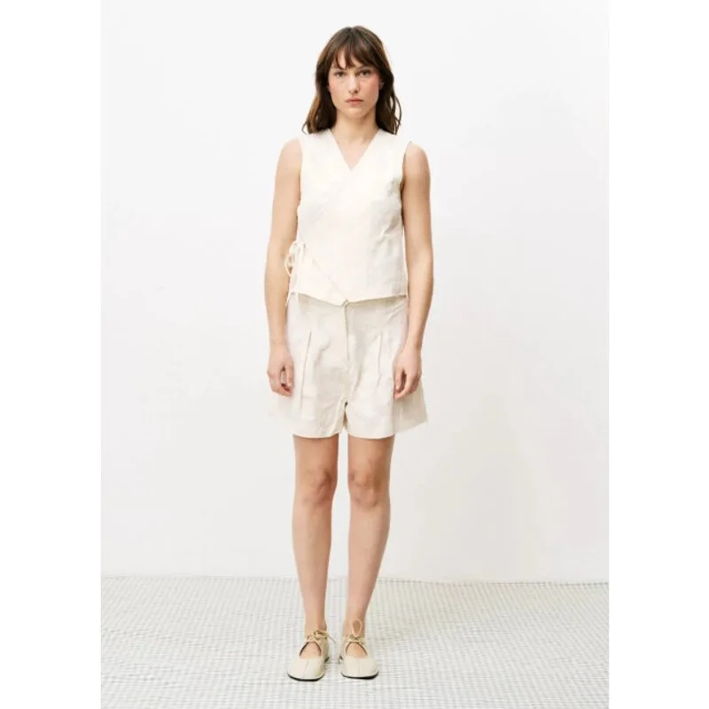 De FRNCH Chemzi gilet is de perfecte mix van moeiteloze elegantie en zomerse luchtigheid. Dit mouwloze model met overslagdesign is uitgevoerd in een luchtige katoen-linnenmix met een subtiele structuur en ton-sur-ton bloemenmotief. De elegante portemonneesnit en striksluiting aan de zijkant zorgen voor een vrouwelijke pasvorm en een unieke touch. Perfect voor warme dagen of gelaagd onder een blazer op koelere momenten. De neutrale beige tint maakt combineren met andere items uit je garderobe moeiteloos – van denim tot linnen shorts. Stylingtip: Combineer met de bijpassende FRNCH Novalie short voor een stijlvolle co-ord set of draag ‘m los met een high-waist jeans of rok. Product details: Merk: FRNCH Model: Chemzi gilet top Kleur: Beige Crossover gilet-top met strik aan de zijkant Portemonneesnit voor een elegante fit Subtiel getextureerde stof met bloemendessin 80% katoen, 20% linnen Mouwloos Valt op maat