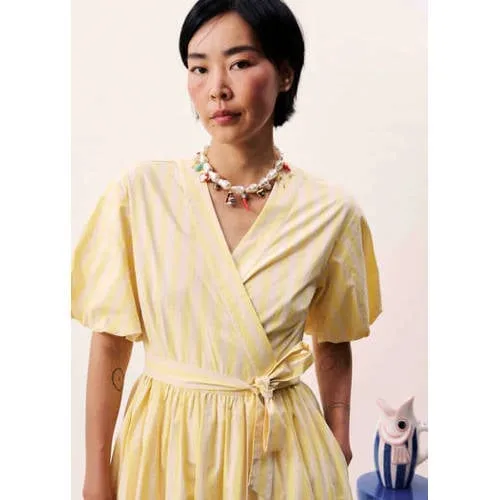 Ga voor een luchtige, zomerse look met deze lange lichtgele damesjurk van katoen van FRNCH. De jurk heeft een elegante V-hals, korte mouwen en een striksluiting in de taille, waardoor je eenvoudig een mooie pasvorm creëert. De lichte kleur en het lange silhouet zorgen voor een vrouwelijke uitstraling, passend bij zonnige dagen en avonden.Details die het verschil maken Gemaakt van 100% katoen, voelt zacht aan en is prettig om te dragen op warme dagen Lange lengte voor een elegante, vloeiende look Korte mouwen bieden net genoeg bedekking, zonder dat het warm wordt V-hals zorgt voor een open, verfijnd decolleté Striksluiting in de taille, zodat je de pasvorm zelf kunt aanpassen Lichtgele kleur met frisse holiday uitstralingVoor zonnige dagen en holiday vibesDeze jurk is een geschikte optie voor vakantie, een etentje op het terras of een zomerse dag in de stad. Draag de jurk met sandalen en een rieten tas voor een ontspannen look, of met een nette slipper en subtiele sieraden als je het iets gekleder wilt.De stijl van FRNCHFRNCH is een Frans merk dat bekendstaat om moderne, vrouwelijke items met een ontspannen city chic uitstraling. De collecties combineren speelse details met draagbare ontwerpen, die goed aansluiten bij een moderne, dagelijkse garderobe.Een lichte, lange jurk waarmee je in één keer klaar bent voor een zomerse dag.