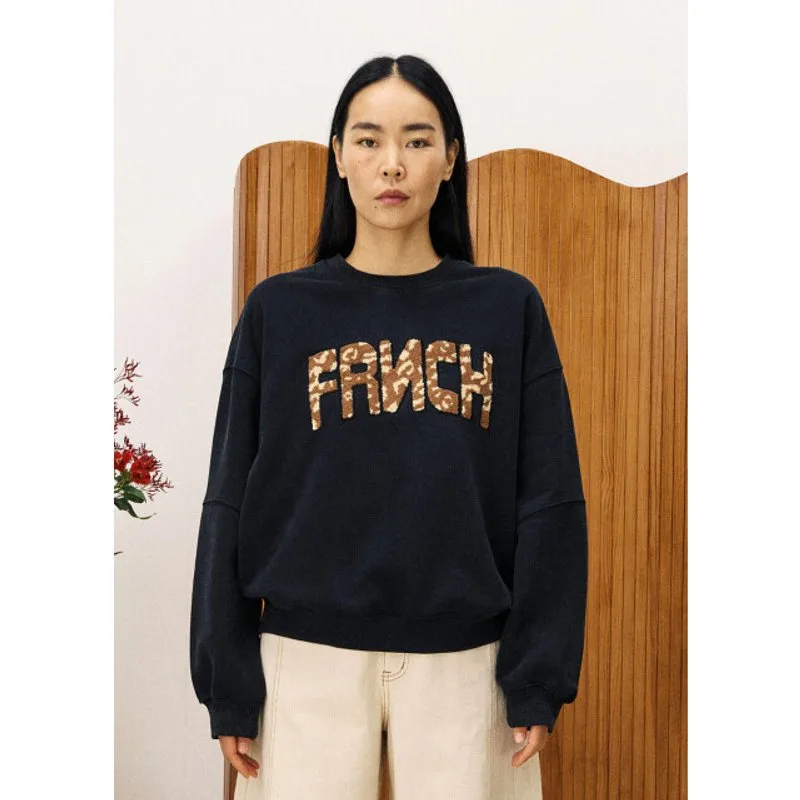 Een heerlijke comfortabele sweater in antracietgrijs van FRNCH. De Lime sweater heeft een opvallend FRNCH-logo op de borst, uitgevoerd in een warme, teddy-achtige leopardprint, welke deze basic trui een speelse, eigentijdse look geeft. Dankzij de rechte pasvorm en zachte katoenmix is dit sweatshirt niet alleen stijlvol, maar ook heerlijk om te dragen. Perfect voor een casual dag. Stylingtip: Combineer met een lichte jeans of cargobroek voor een nonchalante look, of draag ‘m als contrasterend item onder een nette blazer. Product details: Merk: FRNCH Model: Lime sweater Kleur: Antracietgrijs met bruin/beige logoprint Materiaal: 50% katoen, 50% polyester Pasvorm: Rechtvallend Ronde hals Geribde boorden Opvallend FRNCH-logo in teddy-stof Comfortabele en zachte sweatkwaliteit