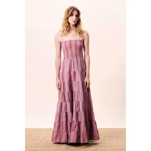 Deze lange, paarse katoenen damesjurk met spaghettibandjes van FRNCH is een lichte en luchtige keuze voor zonnige dagen. De jurk valt lang langs het lichaam, heeft een moderne vierkante hals en dunne bandjes die de schouders sierlijk laten zien. De zachte stof van 100% katoen voelt prettig aan op de huid en beweegt soepel met je mee.Ontwerp en pasvorm Lange jurk in de kleur paars voor een rustige uitstraling Gemaakt van 100% katoen, voor een ademend en comfortabel gevoel Spaghettibandjes geven een open, zomerse uitstraling Vierkante halslijn voor een moderne, strakke belijning Elastische inzet zorgt voor een aansluitende maar flexibele pasvormIdeaal voor zonnige dagen en avondenDeze jurk past goed bij vakanties, een dagje stad of een etentje op een terras. Draag de jurk met sandalen en een lichte tas voor een ontspannen daglook. Met een fijn vest en sieraden maak je er eenvoudig een outfit van voor de avond.FRNCH: eigentijdse Franse stijlFRNCH haalt inspiratie uit Parijs en vertaalt dat naar moderne, draagbare mode. De collecties combineren heldere lijnen met verfijnde details, waardoor de kleding makkelijk te stylen is en toch een eigen karakter heeft. Met deze jurk voeg je een comfortabel en veelzijdig item toe aan je garderobe.Een praktische keuze als je op zoek bent naar een lange, zomerse jurk die de hele dag prettig draagt.