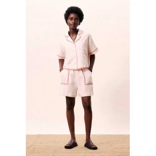 Deze lichtroze korte damesbroek van FRNCH is een luchtige basic voor zonnige dagen. De broek heeft een loose pasvorm en een regular waist, waardoor deze soepel om je lichaam valt en niet strak zit. De elastische tailleband zorgt voor een comfortabele aansluiting en maakt aan- en uittrekken heel eenvoudig. Gemaakt van 100% katoen, voelt de stof zacht aan en is hij prettig om te dragen bij warm weer.Licht en luchtig comfort Gemaakt van 100% katoen voor een zachte touch en prettig draaggevoel Loose pasvorm die ruim valt en veel bewegingsvrijheid geeft Elastische tailleband voor extra comfort en een flexibele fit Regular waist die mooi op de heupen aansluit Lichtroze kleur die zorgt voor een frisse, zomerse uitstralingIdeaal voor zomerse dagen en vakantieDeze korte broek past goed bij dagen waarop je veel onderweg bent of juist rustig wilt genieten. Combineer met een luchtige top en sandalen voor een ontspannen vakantielook, of draag er een T-shirt en sneakers bij voor een casual outfit in de stad.FRNCH: moderne stijl met een Franse touchFRNCH haalt inspiratie uit de straten van Parijs en vertaalt die naar toegankelijke mode met een moderne uitstraling. Met aandacht voor silhouet, kleur en details biedt het merk kleding die comfortabel is om te dragen en toch verzorgd oogt. Zo wordt mixen en matchen in je dagelijkse garderobe heel eenvoudig.Eenvoudig, licht en stijlvol, deze korte broek is een praktische basis voor al je zonnige plannen.