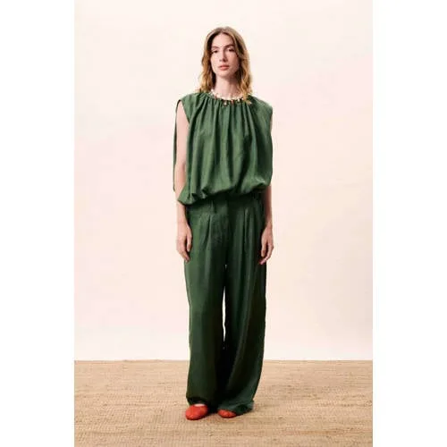 Deze groene mouwloze top voor dames van FRNCH is een lichte, vrouwelijke basic die je zo aantrekt op warme dagen. De top heeft een ronde hals en een subtiele knoopsluiting op de rug, waardoor de achterkant net iets extra's krijgt. De zachte stof met 62% viscose en 38% lyocell valt soepel langs je lichaam en voelt luchtig aan, ideaal voor zowel werk als vrije tijd.Verfijnde details en comfortabel materiaal Kleur: groen, een rustige tint die makkelijk combineert met neutrale en donkere onderstukken Mouwloos model, prettig op warme dagen of onder een blazer of vest Ronde hals voor een tijdloze, toegankelijke uitstraling Knoopsluiting achter voor een nette afwerking en extra instapcomfort Gemaakt van 62% viscose / 38% lyocell, een soepele en zachte stof met een mooie vallingMakkelijk te stylen in je dagelijkse outfitsDeze top is geschikt voor veel momenten op de dag. Combineer met een wijde pantalon en sandalen voor een ontspannen, moderne look, of draag hem in een jeans met sneakers voor een meer casual outfit. Door de rustige kleur en het eenvoudige silhouet vormt deze top een fijne basis in je garderobe.FRNCH: eigentijdse stijl met een Franse twistFRNCH is een Frans merk dat bekendstaat om eigentijdse collecties met een vrouwelijke, stedelijke uitstraling. De ontwerpen hebben vaak een heldere snit, doordachte details en kleuren die goed aansluiten bij het seizoen. Met FRNCH kies je voor kleding die je makkelijk combineert en die je garderobe op een stijlvolle, moderne manier aanvult.Een luchtige top die je keer op keer uit de kast pakt voor comfortabele, doordachte outfits.