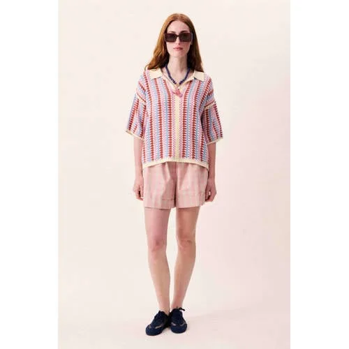 Ga voor een frisse, speelse look met deze multicolor trui voor dames van FRNCH. De combinatie van meerdere kleuren past perfect bij de 'Holiday Vibes' trend en geeft elke outfit direct een levendige uitstraling. Door de korte lengte en de driekwart mouwen oogt de trui licht en modern, ideaal voor laagjes of om over een hoge taille broek of rok te dragen.Korte trui met kleurrijke uitstraling Kleur: multi, met een levendig kleurbeeld dat eenvoudig te combineren is Korte lengte, mooi bij een hoge taille jeans, pantalon of rok Driekwart mouwen voor een luchtige, vrouwelijke look Gemaakt van 60% katoen / 40% acryl voor een zachte en comfortabele touch Klassieke kraag die zorgt voor een nette, verzorgde uitstralingStyling voor elke dag of holiday vibesDe trui past goed bij een relaxte dag in de stad, een etentje of een weekendje weg. Combineer met een rechte jeans en sneakers voor casual, of draag de trui met een soepele rok en sandalen voor een outfit met echte holiday vibes.FRNCH: moderne stijl uit ParijsFRNCH is een Frans merk dat bekendstaat om eigentijdse modellen met een herkenbare twist. De collecties zijn geïnspireerd op de Parijse straatstijl, met aandacht voor kleur, pasvorm en draagbare ontwerpen. Zo voeg je met FRNCH eenvoudig een item met een uitgesproken kleurgebruik aan je garderobe toe.Een kleurrijke trui die je garderobe meer zomerse kleur en variatie geeft.