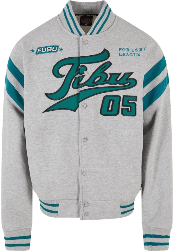 Specificaties: FUBU Sweatvest ‘Varsity’ grijs gemêleerd / petrol / smaragd / zwart