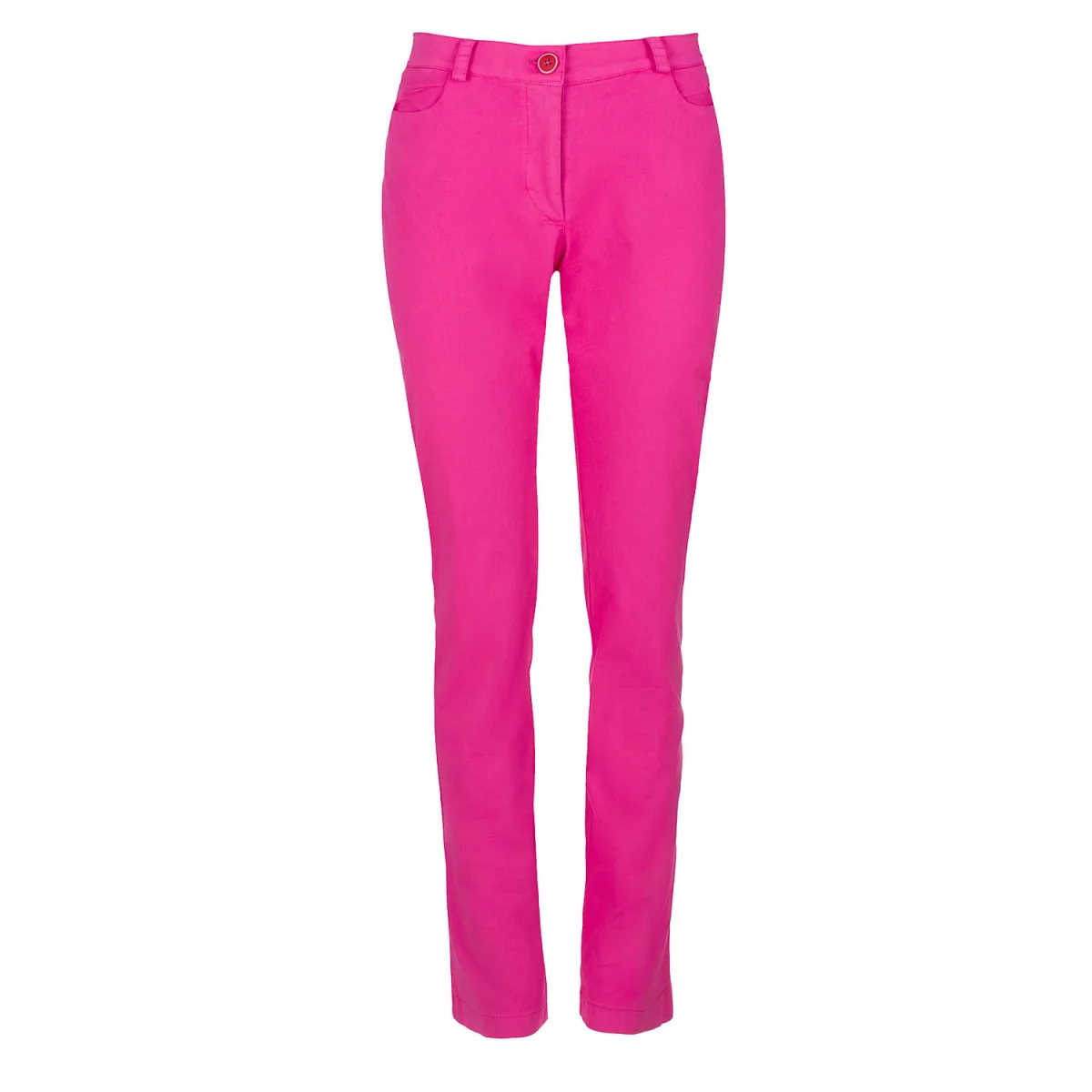 Deze fuchsia tie dye lange getailleerde broek is gemaakt van stretch gabardine katoen. Hij sluit met een decoratieve plastic knoop en een verborgen metalen rits aan de voorkant. Er zijn twee binnenzakken aan de voorkant. Deze broek is getailleerd en heeft een gemiddelde hoogte.