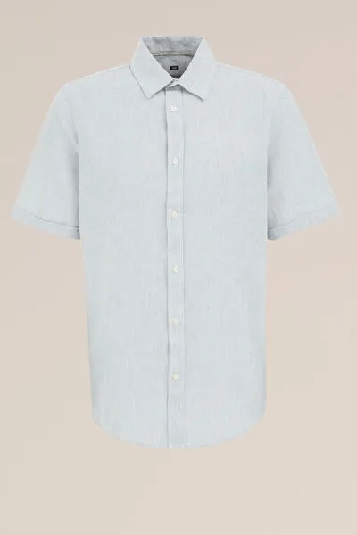 Fundamentals – Heren Regular fit overhemd van linnenmix – Regular fit – Blauw – Linnen – Prijzen