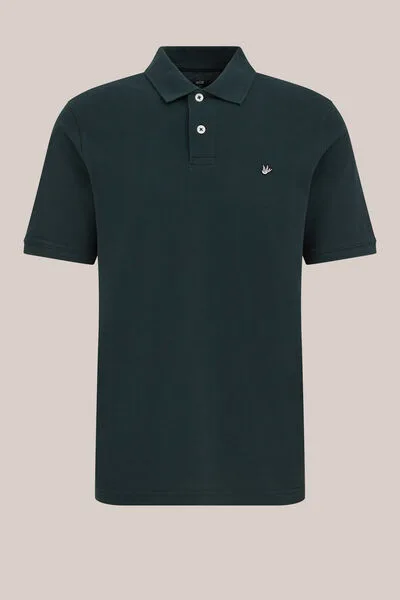 Fundamentals – Heren regular fit polo met structuur – Regular fit – Donkergroen – Katoen –