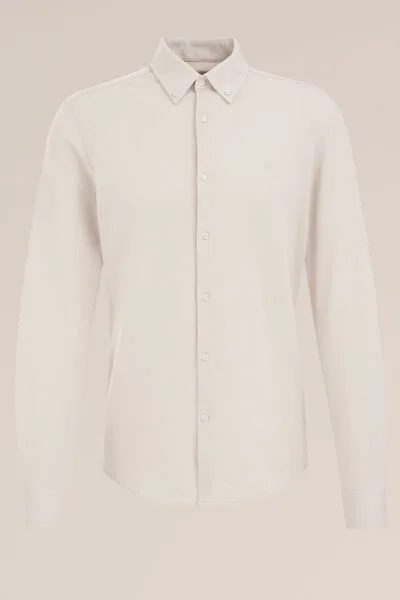 Fundamentals – Heren Slim fit overhemd van piquéjersey – Slim Fit – Gebroken wit – Katoen – Prijzen