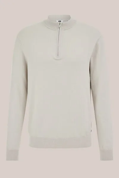 Specificaties: Fundamentals – Heren slim fit trui met rits – Slim Fit – Greige – Katoen –
