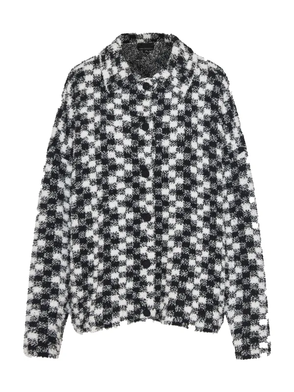 Design: Knop placket, Ronde zoom; Type sluiting: Knoopsluiting; Materiaal: Knitwear; Halstype: Overhemdkraag (klassiek); Extra's: All-over patroon; Pasvorm: Losse pasvorm; Armlengte: Lange mouw; Lengte: Normale lengte