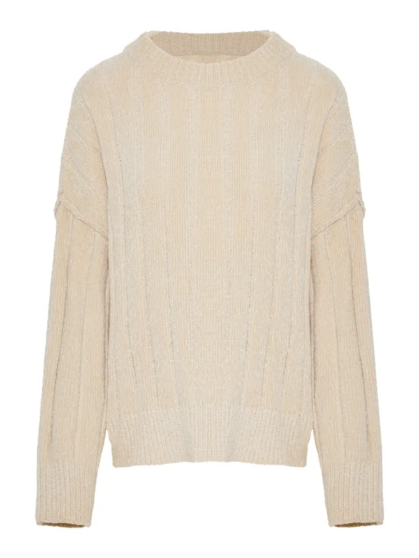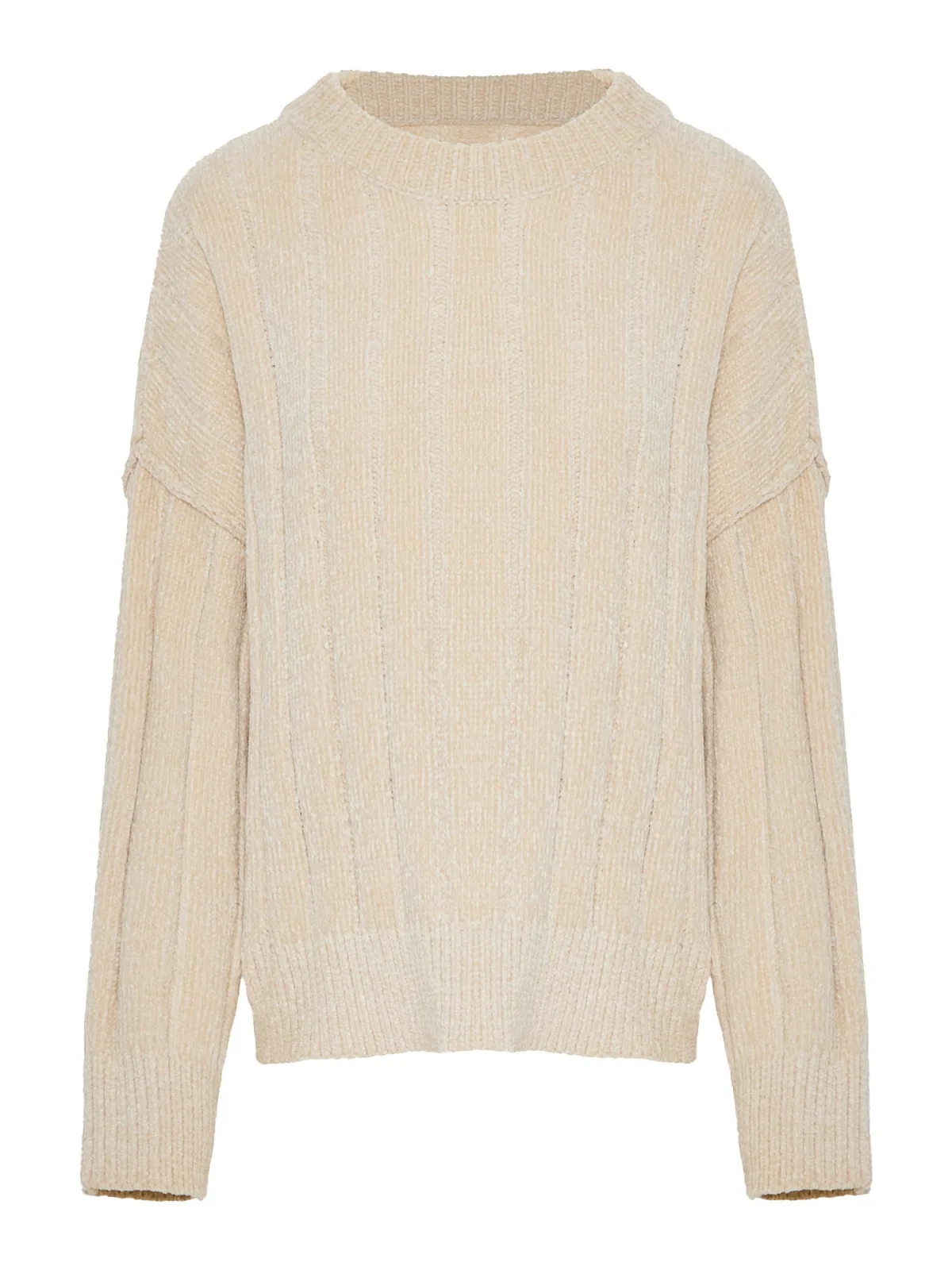 Design: Geribbelde kraag, Geribd ceintuurtje; Materiaal: Knitwear; Halstype: Ronde hals; Motief: Mélange; Extra's: Fully fashioned, Met textuur; Pasvorm: Losse pasvorm; Armlengte: Lange mouw; Lengte: Normale lengte