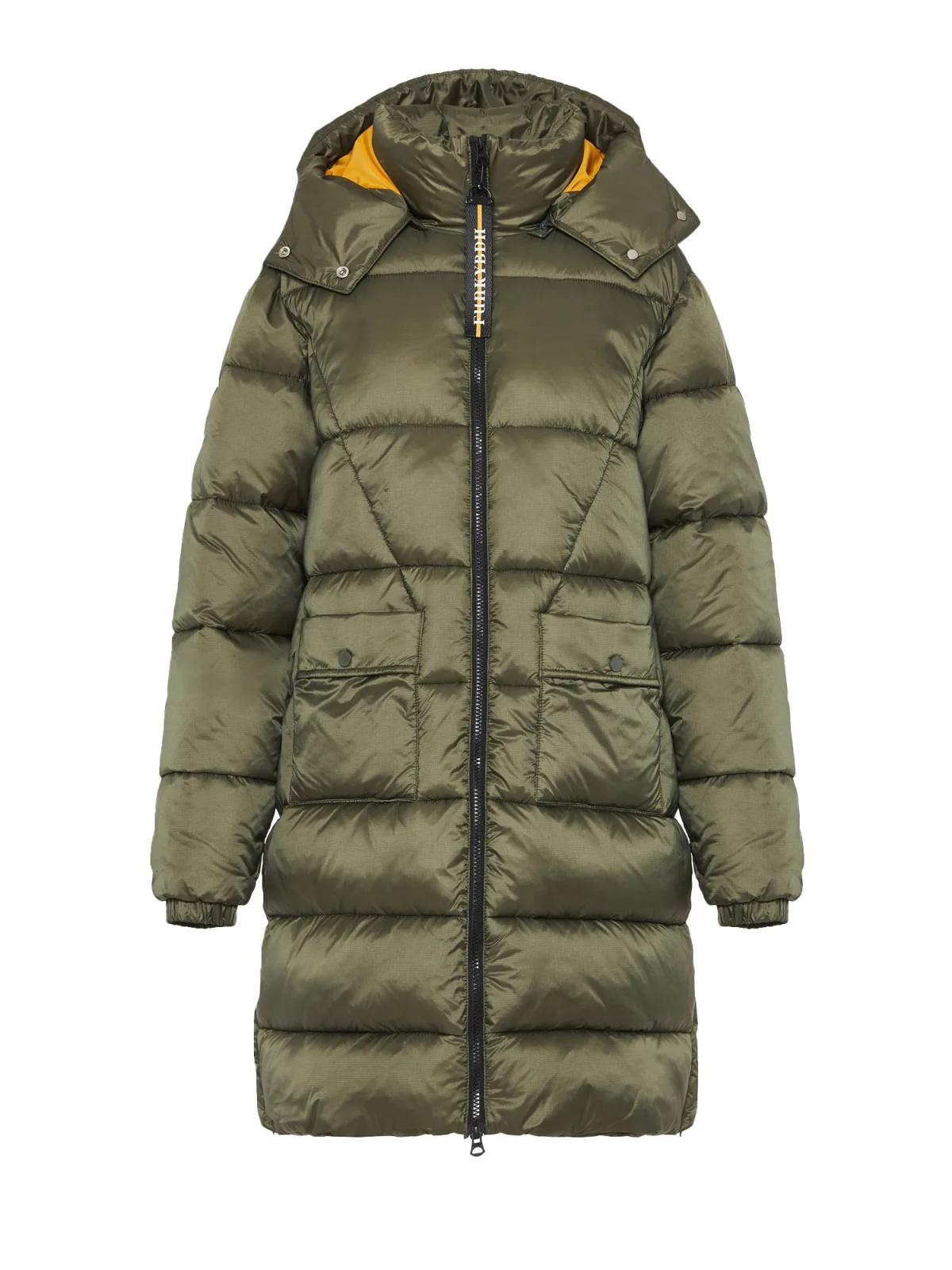 Type mantel: Gewatteerde jas; Design: Afneembare capuchon, Opgezette zakken; Type sluiting: Ritssluiting; Voering: Warm gevoerd; Motief: Effen; Extra's: Glanzend, Op staal naden; Pasvorm: Normale pasvorm; Lengte: Normale lengte
