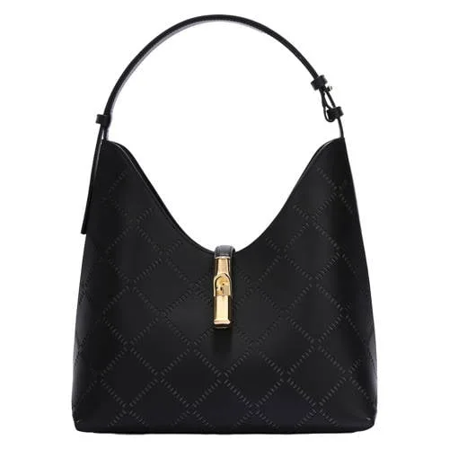 Deze zwarte leren schoudertas van Furla is geschikt voor elke dag. Het middelgrote formaat biedt genoeg ruimte voor je dagelijkse essentials, terwijl de strakke lijnen en het effen design zorgen voor een rustige, moderne uitstraling. De combinatie van zwart leer en goudkleurige hardware maakt deze tas passend voor zowel werk als vrije tijd.Praktische details in een elegant ontwerp Gemaakt van 100% leer voor een stevige tas met een gladde leerstructuur Middelgroot formaat, ideaal voor wallet, telefoon, sleutels en een kleine tablet Hoogte 30 cm, breedte 30 cm en diepte 16 cm voor een overzichtelijke indeling Veilige magneetsluiting zodat je spullen makkelijk toegankelijk zijn Verstelbare schouderband voor een draaghoogte die je eenvoudig aanpast Effen zwarte kleur met goudkleurige hardware voor een rustig geheel dat bij veel outfits pastVoor werkdagen, citytrips en etentjesDoor het rustige design combineer je deze tas eenvoudig met verschillende outfits. Naar kantoor, een dagje shoppen of een etentje, de tas heeft een verzorgde afwerking en biedt tegelijk genoeg ruimte voor wat je graag bij je hebt. Draag de tas comfortabel over je schouder en houd je handen vrij.Furla studio collectieFurla staat bekend om tassen met een heldere vormtaal, gemaakt van leer en met aandacht voor detail. De Studio collectie sluit daar direct op aan, met ontwerpen die modern ogen en goed passen in een garderobe die je vaak gebruikt. Zo kies je voor een tas waarin de herkenbare stijl van Furla en praktisch gebruik samenkomen.Een tas die je dagelijks gebruik ondersteunt en geschikt is voor uiteenlopende momenten op de dag.