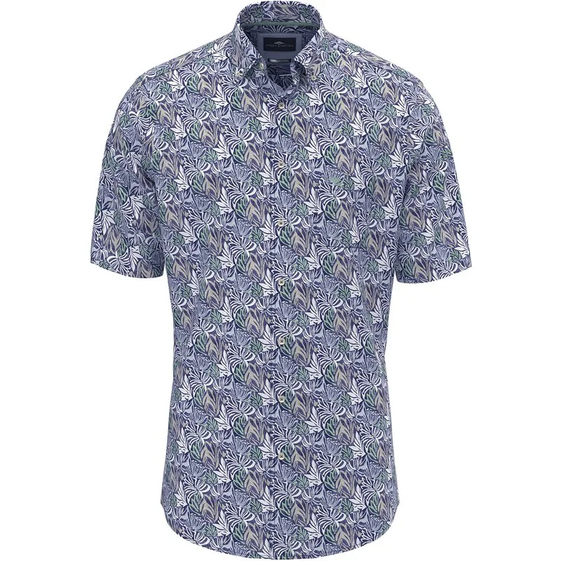 FynchHatton Korte Mouw Overhemd Heren L Blauw Katoen 15038391