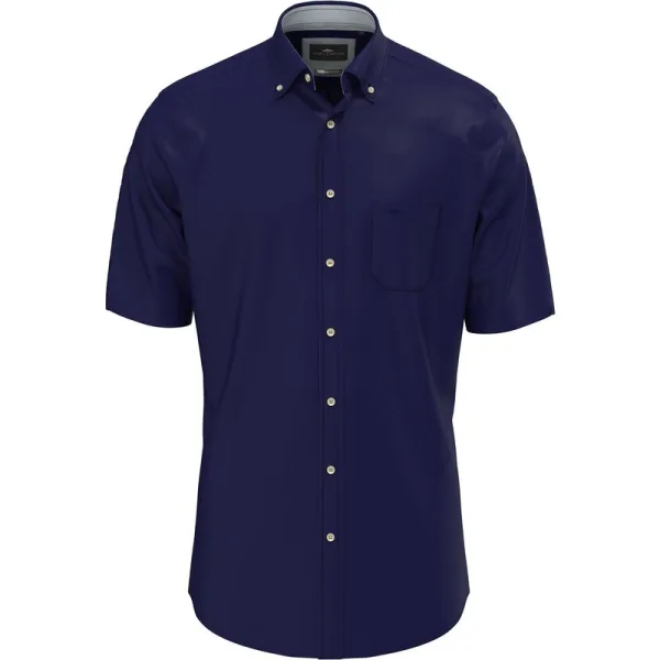FynchHatton Korte Mouw Overhemd Heren L Blauw Katoen 15048091