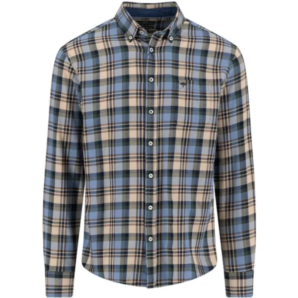 Zacht geruwd katoenen heren overhemd van Fynch Hatton met een klassiek ruit dessin. Regular fit Borstzakje 100% Katoen Kleurnummer: 837