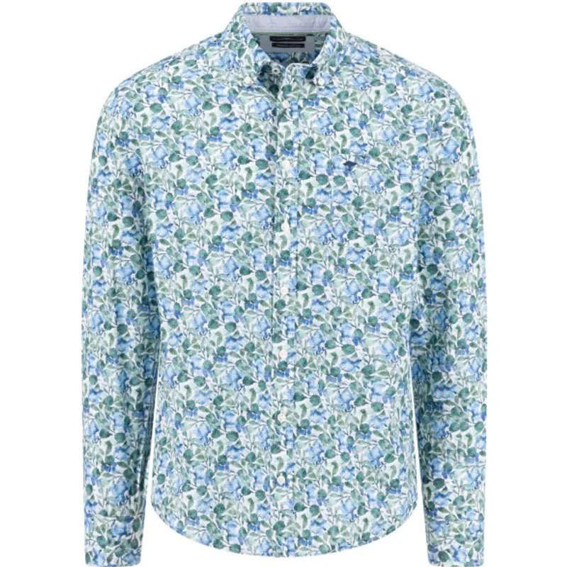 Gebloemd lange mouw heren overhemd van Fynch Hatton. Regular fit Borstzakje 100% Katoen Kleurnummer: 740 avacado