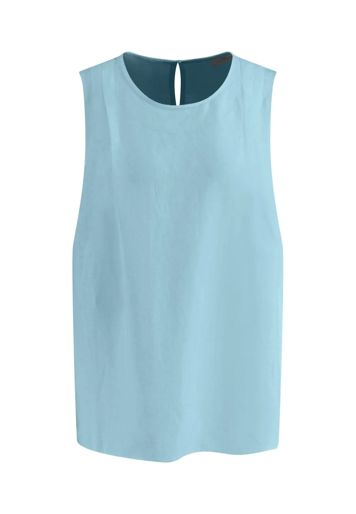 Blouse type: Blouseshirt; Design: Keyholesluiting; Type sluiting: Knoopsluiting; Materiaal: Linnen; Motief: Effen; Kraag: Zonder kraag; Extra's: Lichte stof; Pasvorm: Losse pasvorm; Armlengte: Mouwloos; Lengte: Normale lengte