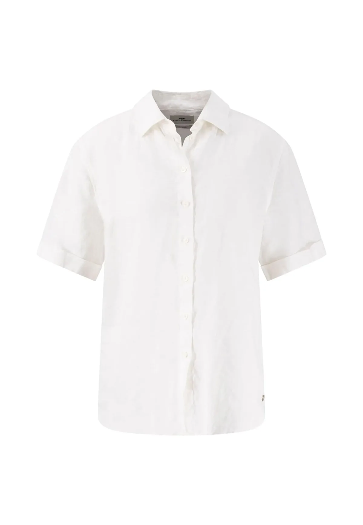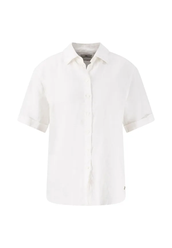 Blouse type: Klassieke blouse; Design: Gevoerde zoom/rand, Mouw revers, Ronde zoom, Verlengd rugpand; Type sluiting: Knoopsluiting; Materiaal: Linnen; Motief: Effen; Kraag: Kentkraag; Details: Plooien; Extra's: Op staal naden, Lichte stof; Pasvorm: Normale pasvorm; Armlengte: Kwartmouw; Lengte: Normale lengte