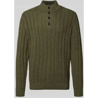 Gebreide herenpullover van Fynch-Hatton;Mix van katoen en wol;Regular fit;Ribboorden;Opstaande kraag;Korte knoopsluiting;Ruglengte bij maat M: 69 cm;Mouwlengte bij maat M: 71 cm
