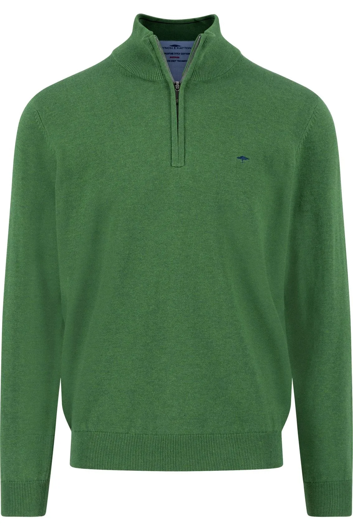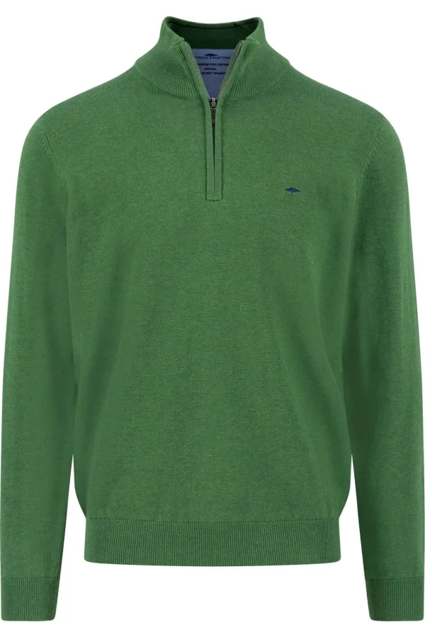 Fynch-Hatton Half-Zip Sweater groen, Effen