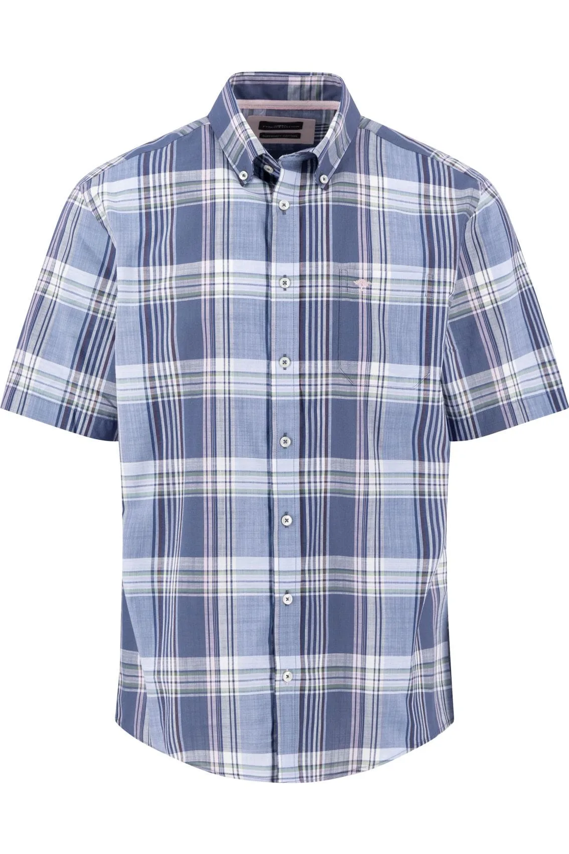 Fynch-Hatton Linnen Overhemd blauw, Ruit