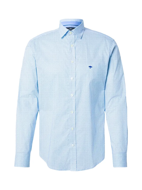 Design: 1-knoops manchetten, Gevoerde zoom/rand, Placket, Rugplooi, Ronde zoom; Type sluiting: Knoopsluiting; Materiaal: Katoen; Kraag: Kentkraag; Extra's: All-over patroon; Pasvorm: Regular fit; Armlengte: Lange mouw