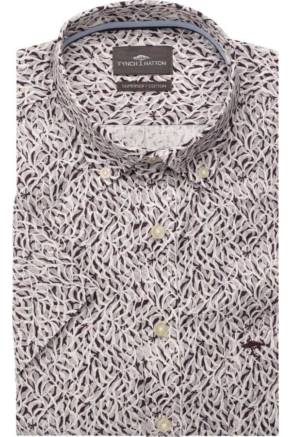 Fynch-Hatton Overhemd Korte mouw aubergine Prijzen