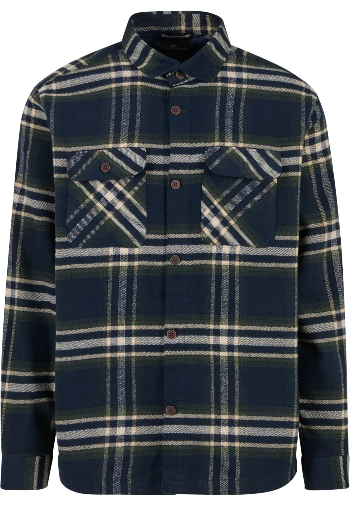 FYNCH-HATTON Overhemd lichtbeige / navy / donkergroen