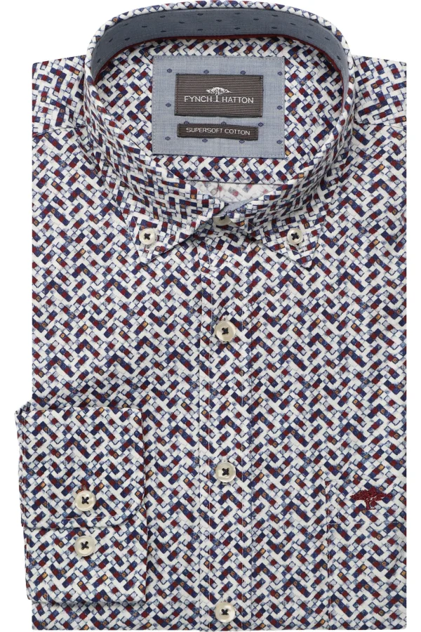 Fynch-Hatton Overhemd rood, Bedrukt Prijzen