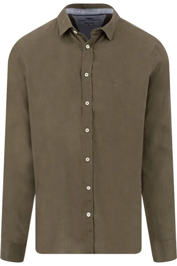 Specificaties: Fynch-Hatton Overshirt Donker kaki, Effen
