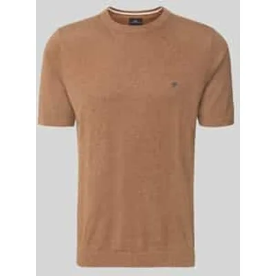 heren t-shirt van Fynch-Hatton;Katoenmix met linnenanteil;regular fit;tricotlook;gestikt logo;Elastische boorden;Ruglengte bij maat M: 70 cm